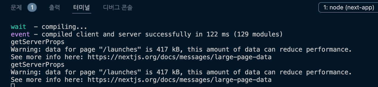 getServerSideProps에서 console을 찍으면 아래와 같이 서버 터미널에 log가 찍힌다.